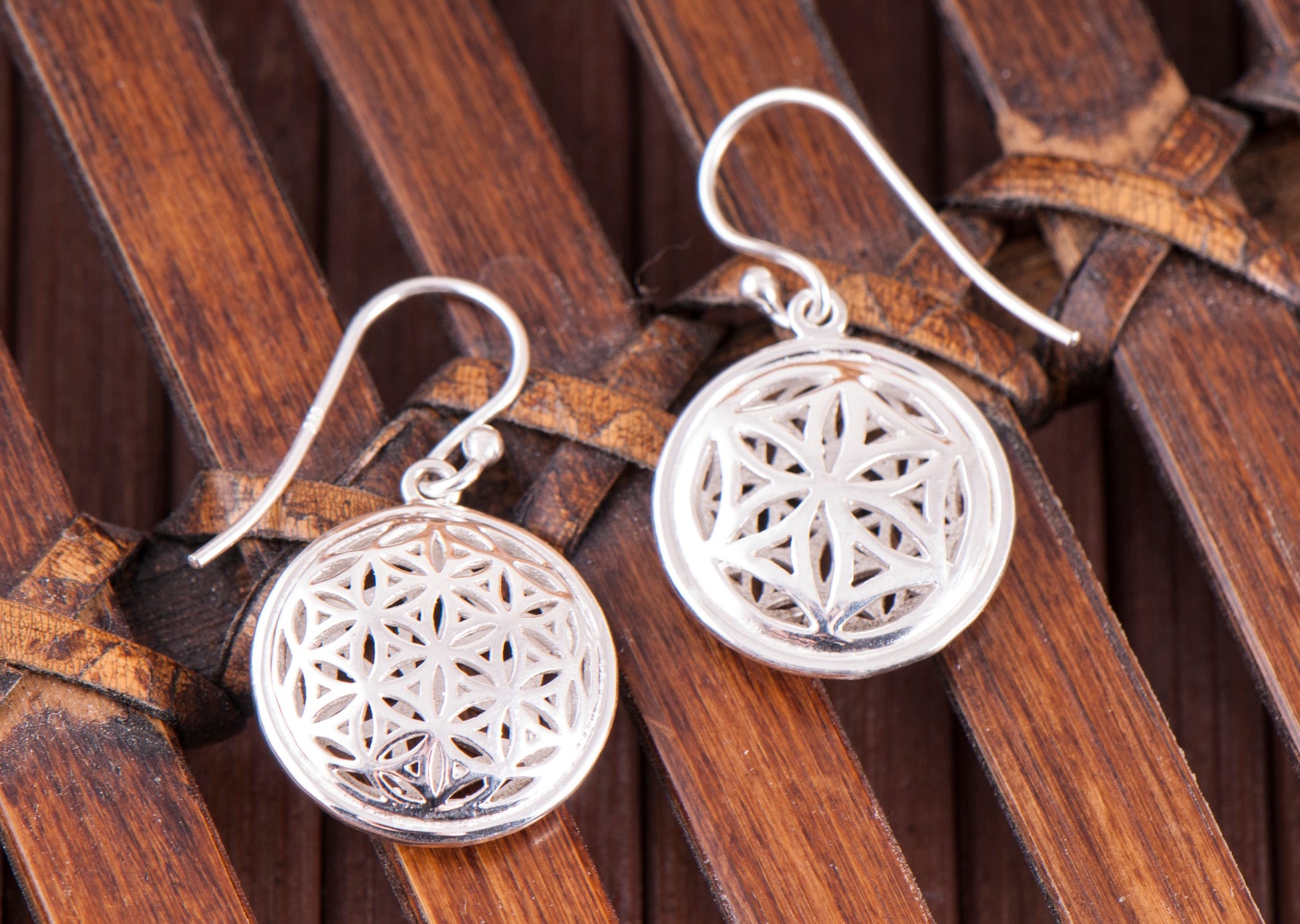 Blume des Lebens 3D, Ohrhänger Silber